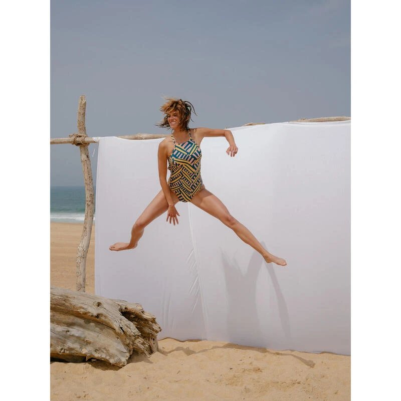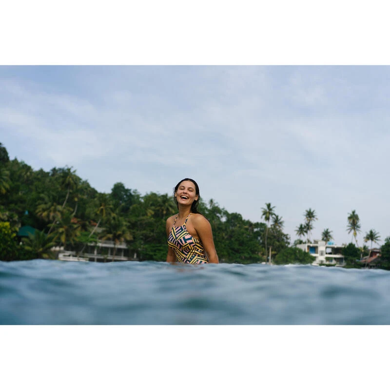 8756262Ons team met surfsters van elk niveau ontwikkelde dit badpak voor gevorderde surfsters die surfen op golven van minder dan een meter hoog.Dit badpak, met pads, is speciaal ontworpen voor surfsters en heel bedekkend aan de voorkant om je te beschermen tegen irritaties. De rug en schouders zijn volledig vrij, perfect bij het uitpeddelen