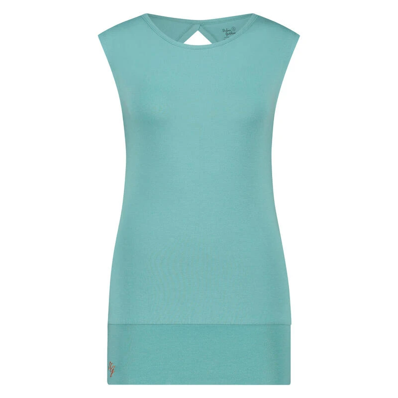Onze Bhav yoga tuniek is een lange yoga top met heupband. Door de extra lengte is de Trency, nauwsluitende Yogatop met heupband – Bhav ook erg geschikt voor lange yoginis of zwangeren. Deze tuniek zal lekker goed blijven zitten op de heupen, dankzij de brede heupband. Dus geen zorgen tijdens je inversions en down-dogs.
