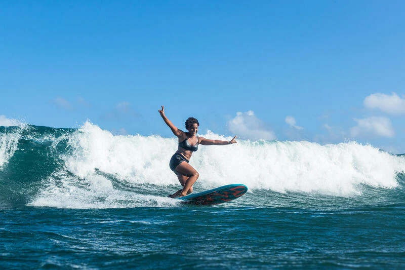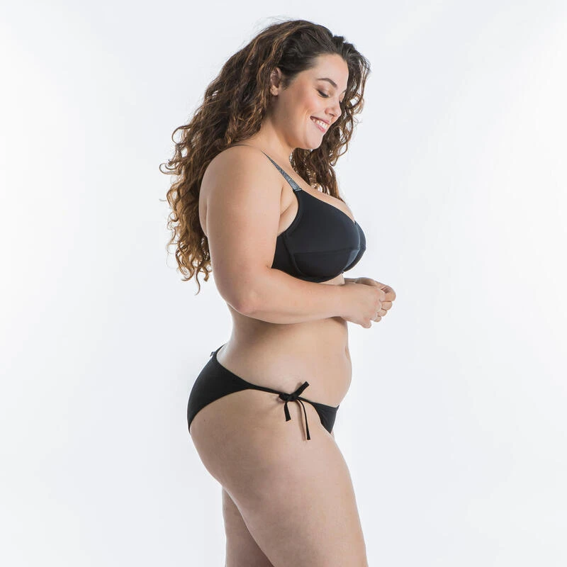 8731405Ons team met surfsters van elk niveau ontwikkelde deze badkleding voor beginnende surfsters die op kleine golfjes surfen.Onze balconette-bikinitop Astrid heeft innovatieve beugels in textiel die ongelooflijk veel comfort bieden. Ontworpen voor grote boezems, heel vrouwelijk, sluit mooi aan op de borsten.