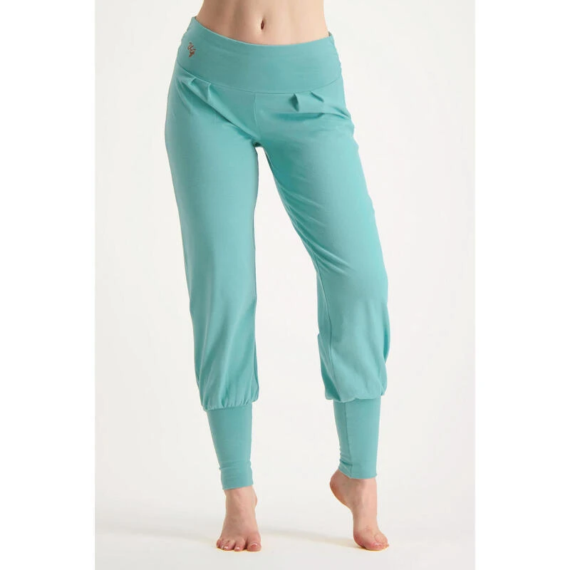 Onze Hippe aladdin broek Dakini – Biologisch katoen is mega comfortabel, heeft een relaxte fit en is gemaakt van onze signature zachte biologische katoen. Deze moderne versie van de Alladin pants, heeft een zachte band op de buik en heupen met kleine plooitjes op de zijkant. De pijpen van de Hippe aladdin broek Dakini – Biologisch katoen zijn lekker wijd en komen weer samen in een leuke slanke, maar hoge enkelbanden. Dus welke yoga pose je ook doet je broek blijft gewoon lekker zitten.