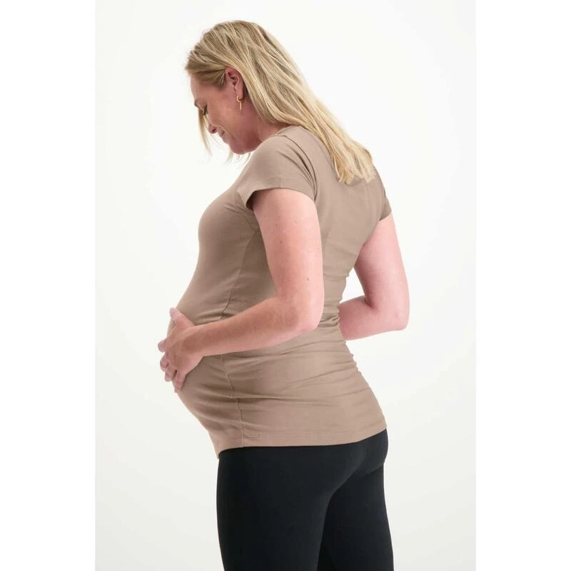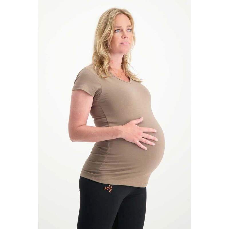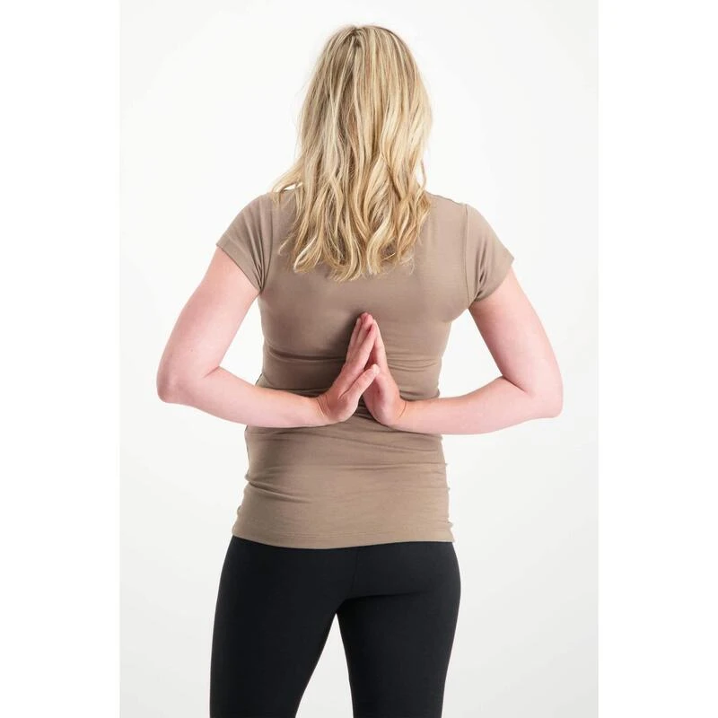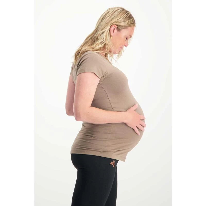 Zwangerschaps yoga t-shirt gemaakt van bamboe en bio katoen. Extra lang, zacht en antibacterieel.