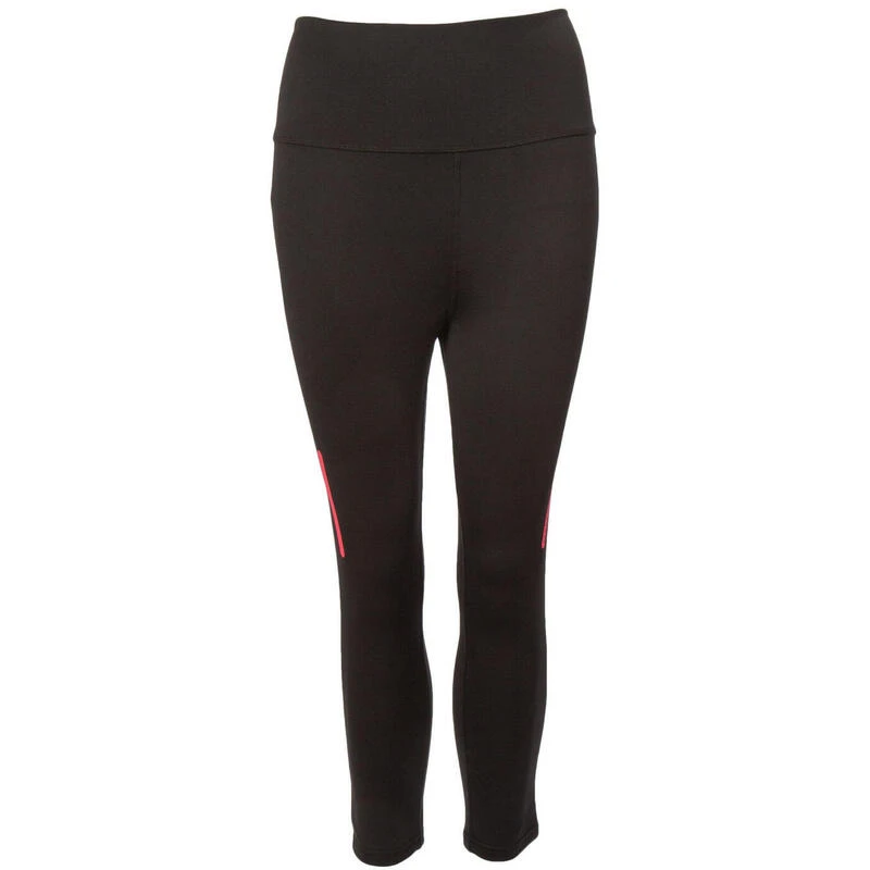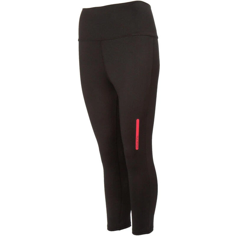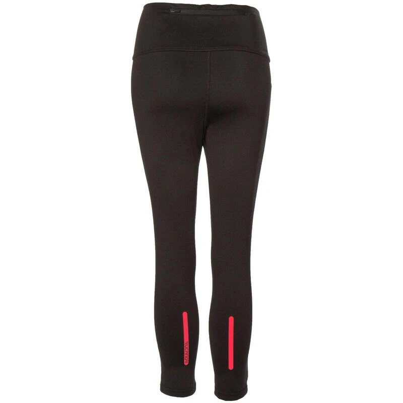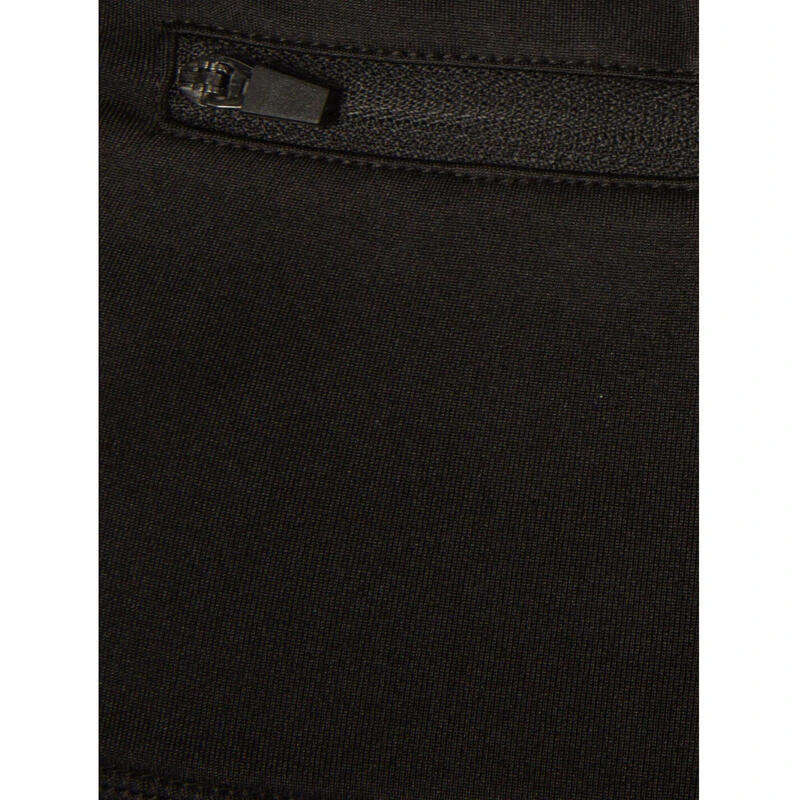 De zwarte capri hardloopbroek heeft een brede, comfortabele, omvouwbare band die drukplekken tegengaat. Het heeft een geintegreerd sleutelzakje en reflecterende elementen.