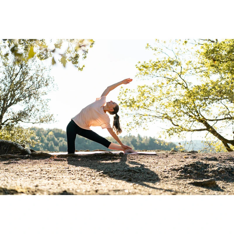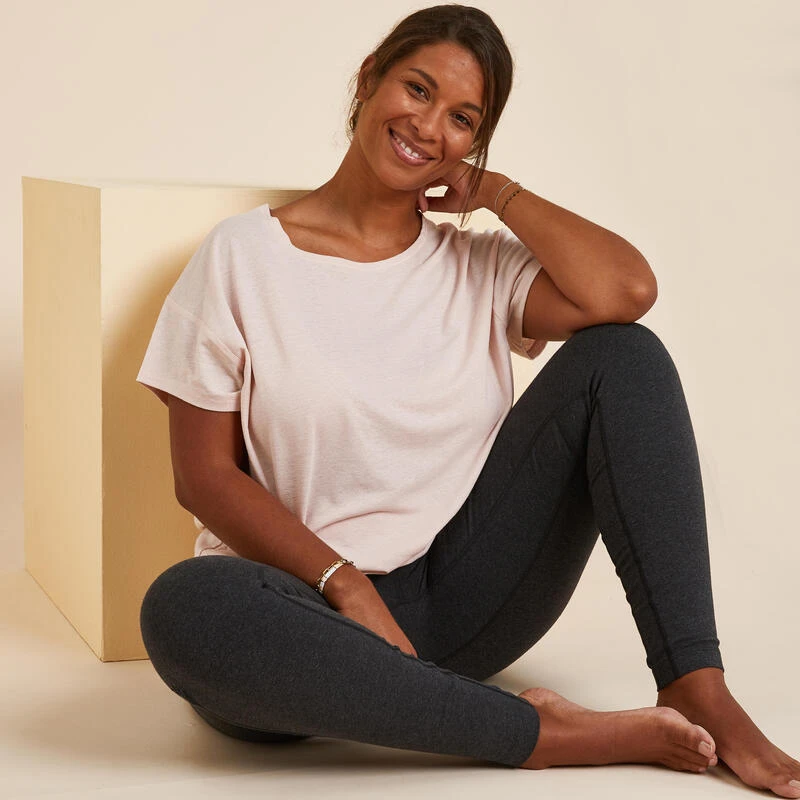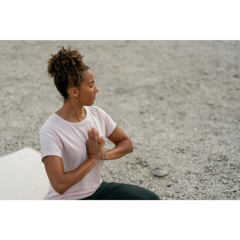 8605235Op zoek naar een ecodesigned T-shirt voor zachte yoga? Ons team creëerde dit model met originele snit dat perfect is voor yoga!Onze yogi’s ontwikkelden dit T-shirt in een stof met structuur, ideaal om in alle rust aan yoga te doen: vlas voor een fris gevoel, gerecycled polyester voor veel zachtheid.