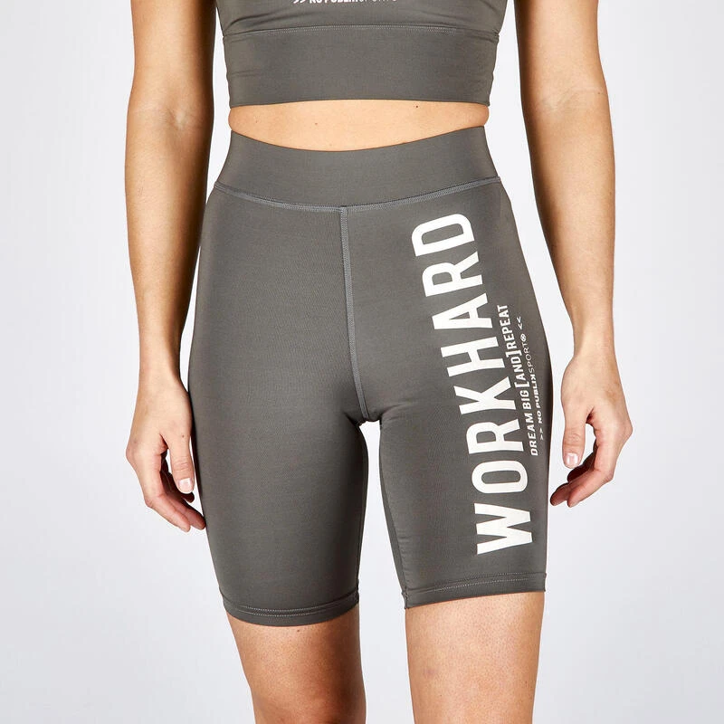 De Etna Sport -fietser is ideaal voor reguliere sporten. De grote elastische riem brengt onderhoud en comfort. De fietser is verenigd met een “harde werk” print op het been. Lange sportshorts met een omhulseleffect dat je silhouet ondersteunt.