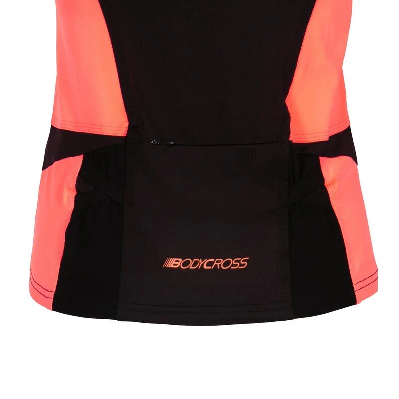 Twee zakken in de onderrug, rechts en links, gesloten door een klep, kunnen elk gel en mueslirepen bevatten om energie te houden tijdens het hardlopen. Een derde zak met rits maakt het mogelijk om items zoals sleutels of telefoon mee te nemen.